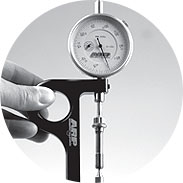 HomeResourcesConnecting Rod InstructionsConnecting Rod InstructionsImportant note-ARP highly recommend using a stretch gauge when installing rod bolts and other fasteners, where it is possible to measure the length of the fastener. It is the most accurate way of measuring preload of any bolt. When using a stretch gauge it\'s best to measure the fastener prior to starting and monitor overall length during installation. When the bolt has stretched a specified amount, the correct preload or clamping force has been applied. ARP recommend that you maintain a chart of all rod bolts and make a note of the fastener length prior to installation and after any disassembly. If there is a permanent increase of .001" or more in length, there is a deformation and the bolt should be replaced. For more information, please refer to ARP website: www.arp-bolts.comARP ROD BOLT INSTALLATION PROCEDURES1Clean the mating surfaces, thread in bolt hole and bolt head loading surface on cap2Match the numbers of cap and beam3Using strength gauge check the original bolt length4Lubricate bolt thread and under-head chamfer5Install bolts to end of thread by hand6Tighten bolts with torque wrench in 2 steps, refer to the recommended torque7Using the strength gauge check the length of bolt again, make sure the stretch is correct. If not, tight or loose the bolt to correct the stretchARP ROD BOLT STRETCH & RECOMMENDED TORQUE BOLT DIA Material U.H.L BOLT STRETCH TORQUE SPECS 5/16" ARP 2000 - 220,000 psi 1.500" .0050" to .0055" 25-28 ft/lbs 3/8" ARP 2000 - 220,000 psi 1.600" .0055" to .0060" 45-50 ft/lbs 3/8" ARP625+ - 280,000 psi 1.600" .0063" to .0067" 50-55 ft/lbs 7/16" ARP 2000 - 220,000 psi 1.600" .0055" to .0060" 65-70 ft/lbs 7/16" ARP 2000 - 220,000 psi 1.800" .0060" to .0065" 70-75 ft/lbs Clearances listed below are a general guideline and may vary according to the application and engine builder preference: ROD BEARINGS .002" to .003" SIDE CLEARANCE .015” to .025” PISTON PIN .0001" to .0015"